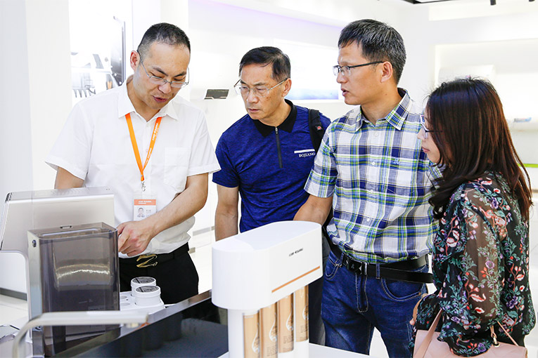 交流會上,董事長俞鋒講述其科恩電器十余年的發(fā)展征程, 磨礪出尖峰,科恩快速被市場廣泛接納、被消費者所認可,良好的品牌形象和知名度、獨特的產(chǎn)品品質(zhì)、合理的價格和服務(wù)讓科恩電器漸漸走向高端。隨后,俞董事長重點介紹并演示了科恩為響應(yīng)“綠色家電”消費,重點研發(fā)的環(huán)保“黑科技”——科恩移動水吧。健康飲水倡導者,全品類廚電質(zhì)造專家科恩電器憑借移動水吧榮獲“工業(yè)設(shè)計大賽產(chǎn)品設(shè)計優(yōu)秀獎”,這一殊榮充分展現(xiàn)了科恩電器的工業(yè)設(shè)計實力,也是行業(yè)對科恩電器在工業(yè)設(shè)計領(lǐng)域成績的充分認可。