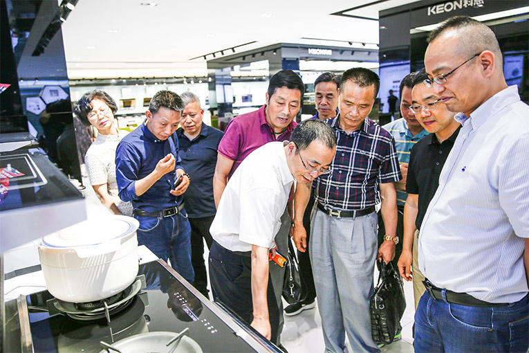企業(yè)代表團首先參觀集成灶十大品牌、廚電行業(yè)十大品牌浙江科恩電器的智能現(xiàn)代化廠區(qū),氣勢恢弘的現(xiàn)代化行政辦公大樓、CNAS國家認可實驗室、高科技智能廚房體驗展館等,一流的設(shè)備、一流的工藝、苛刻的質(zhì)量檢驗,高效的生產(chǎn)效率,嚴謹?shù)臋z測程序及優(yōu)異產(chǎn)品品質(zhì)都讓百余位企業(yè)家贊嘆不已!