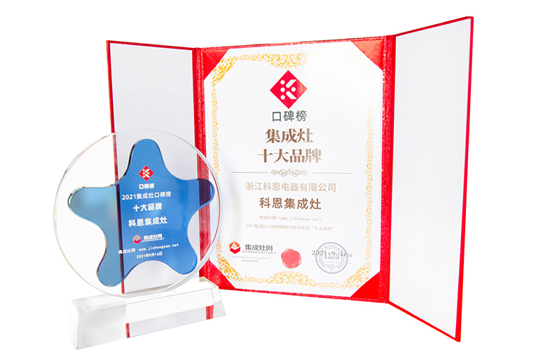 以優(yōu)質(zhì)產(chǎn)品打造品牌,以開拓精神推動進(jìn)步,科恩集成灶在行業(yè)占據(jù)著舉足輕重的地位,成為行業(yè)的佼佼者,榮譽(yù)只是社會對科恩集成灶這個階段發(fā)展的認(rèn)可,多次獲獎就證明科恩集成灶始終走在行業(yè)的前端!是肯定、是信賴,亦是專業(yè)的肯定,2021年9月,科恩集成灶一月內(nèi)斬獲四大行業(yè)/協(xié)會“十大品牌”認(rèn)證,實(shí)力由此可見!