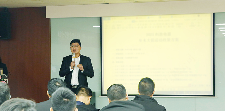 會(huì)議開始,科恩集成灶總經(jīng)理趙漢斌上臺(tái)發(fā)言,趙總表示,回顧前三季度的營(yíng)銷工作發(fā)展情況,在全體精英的實(shí)干拼搏下,科恩業(yè)績(jī)逐月提升,這離不開公司每一位營(yíng)銷經(jīng)理的辛苦付出。趙總還為步入年底階段提出了下一步工作思路,對(duì)最后沖刺工作進(jìn)行全面部署和具體安排。