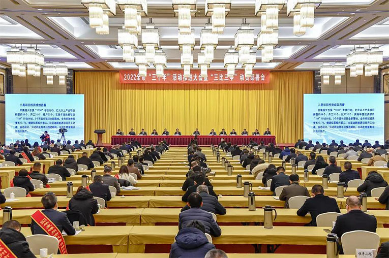 新春伊始,萬象更新,嵊州市“三個年”活動推進大會暨“三比三爭”動員部署會召開。市委書記徐建役在會上強調,為進一步推動全年工作落到實處,市委、市政府決定組織開展“共富建設年”、“項目推進年”、“作風提升年”這“三個年”活動,并同步開展以“比實績、爭先進,比攻堅、爭先鋒,比變革、爭先行”為主要內容的“三比三爭”活動。會議通報表彰和獎勵了2021年度先進單位、企業和個人。
