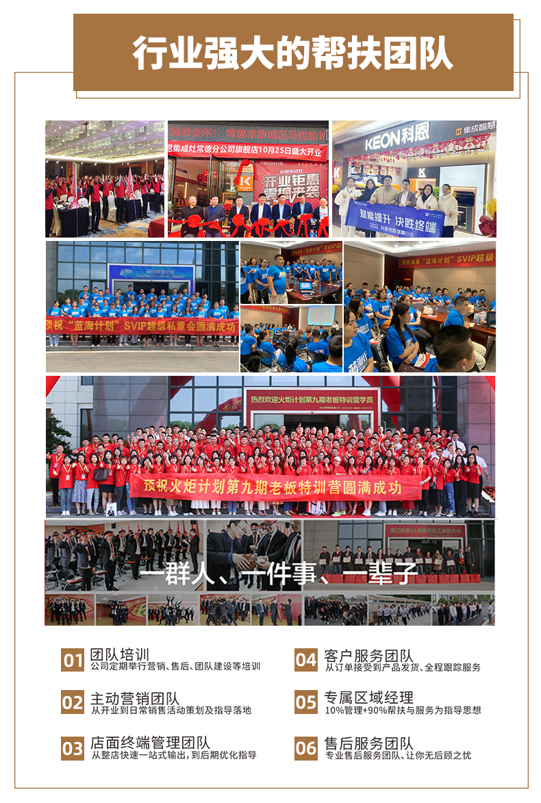 科恩運營中心強商育商團隊始終下沉一線、遍布全國,策劃布局雛鷹行動、總裁簽售會、金牌服務、龍蝦美食節、金九銀十家裝節、開業活動等終端活動,全方位手把手扶持,為終端提供堅實后盾,實現共創共贏。