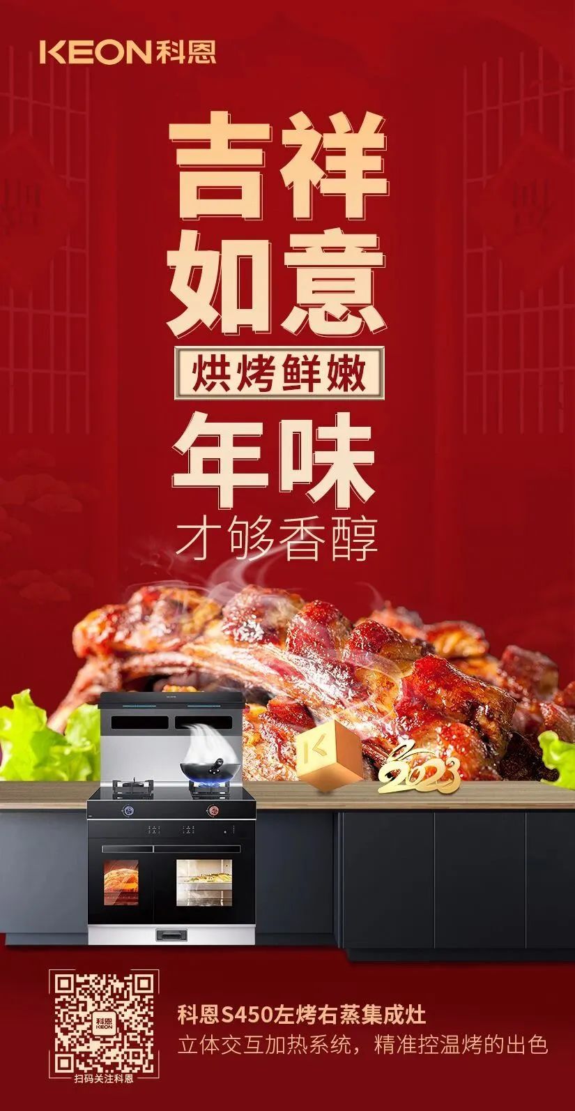 除夕,歲末的最后一天夜晚。在這辭舊迎新的團(tuán)圓之夜,一定要有一頓闔家歡樂,其樂融融圍坐一席的團(tuán)圓年夜飯才算圓滿,TA是每年新年前的重頭戲,不但豐富多彩,而且還講究很多寓意,今夜,科恩集成灶為您和家人奉上一桌寓意滿滿的年夜飯,祝您和家人在新的一年瑞兔呈祥,兔來運(yùn)轉(zhuǎn),兔年大吉,好運(yùn)連連!