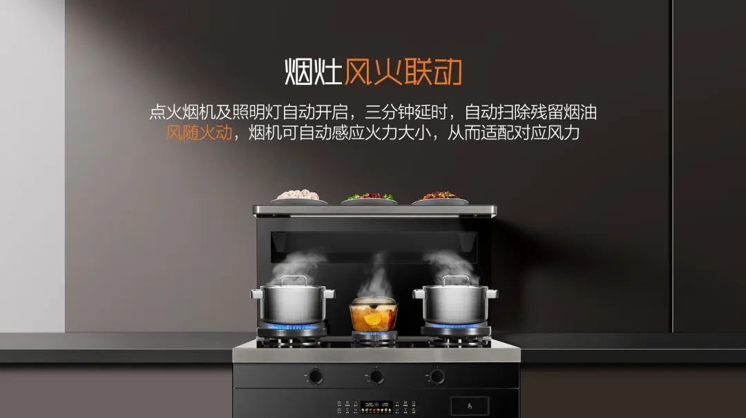 科恩A3系列集成灶擁有兩個(gè)5.0KW聚能藍(lán)焰大火力,爆炒綽綽有余,一個(gè)1.6KW定時(shí)文火小火灶,燉湯最為合適,一次開火搞定兩菜一湯!
