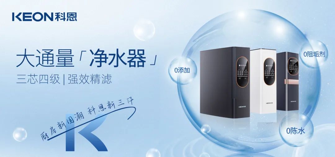 科恩重磅推出7系母嬰級大通量凈水器,主打“八大凈水黑科技”核心技術,智能“喝”護,全家“凈”享,為用戶輕松開啟凈水新體驗!