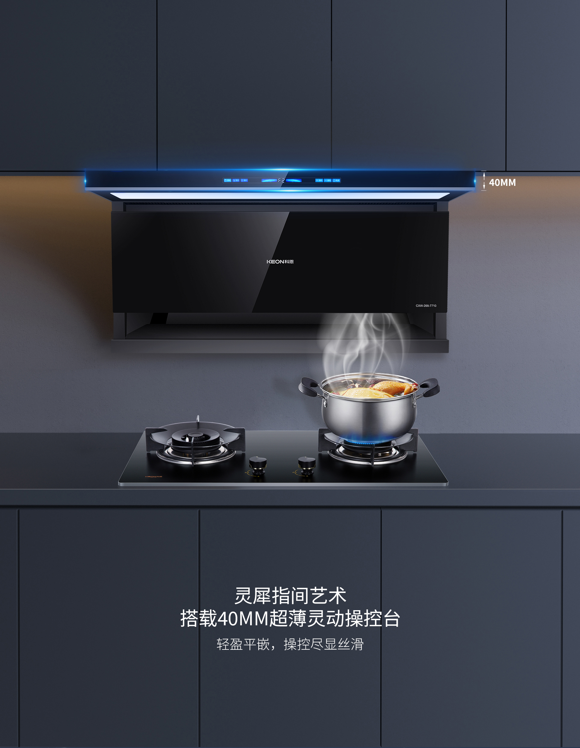 科恩7710智能聯(lián)動煙機(jī),它所代表的不僅僅是技術(shù)層面的高度突破,更是對美好廚房體驗(yàn)矢志不渝的追求。其獨(dú)特的設(shè)計(jì)靈感,仿若來自浩瀚銀河星際。那深邃藍(lán)光跨弧意境的觸摸屏設(shè)計(jì),為烹飪增添了無限想象空間,讓每一次操作都如同在星際間穿梭,充滿了科技與藝術(shù)的交融之美。
