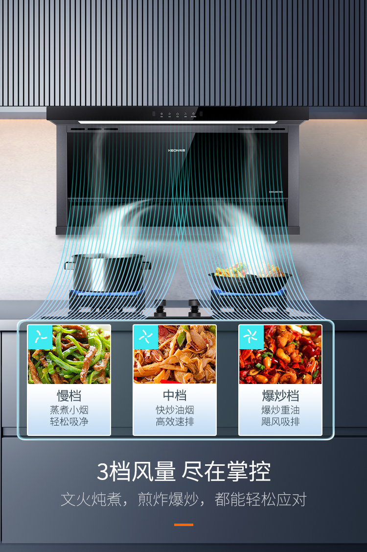 科恩煙機7260,以強大的性能和貼心的設計,打造無煙、舒適的廚房環境,選擇7260開啟您的廚房煥新之旅,讓烹飪成為一種享受!