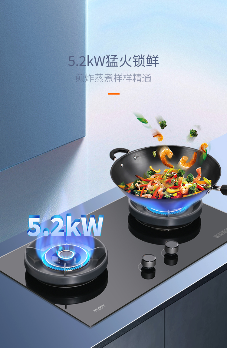 舊灶換新生,廚房有新意。臺嵌兩用,換新優(yōu)選。可調節(jié)底盤設計,換灶零門檻,不擴孔不改孔,老廚房無縫升級。科恩KN530灶具即將來襲,安裝無拘束,安全常在線,解鎖烹飪新體驗。黑晶美學,廚房新名片。黑晶鋼化玻璃面板,輕奢大氣,抗爆耐刮,防滑旋鈕拒絕燙手尷尬,采用鋁合金爐頭,防生銹耐腐蝕,讓灶臺變身藝術品展覽區(qū)。5.2KW猛火是爆炒的底氣,激發(fā)食材本味,享受大廚風味。0°-170° 的寬域控火藏著細膩,收放自如,多種烹飪模式輕松應對。多重凈燃科技,高效倍省氣,KN530灶具,點燃你的烹飪熱情。