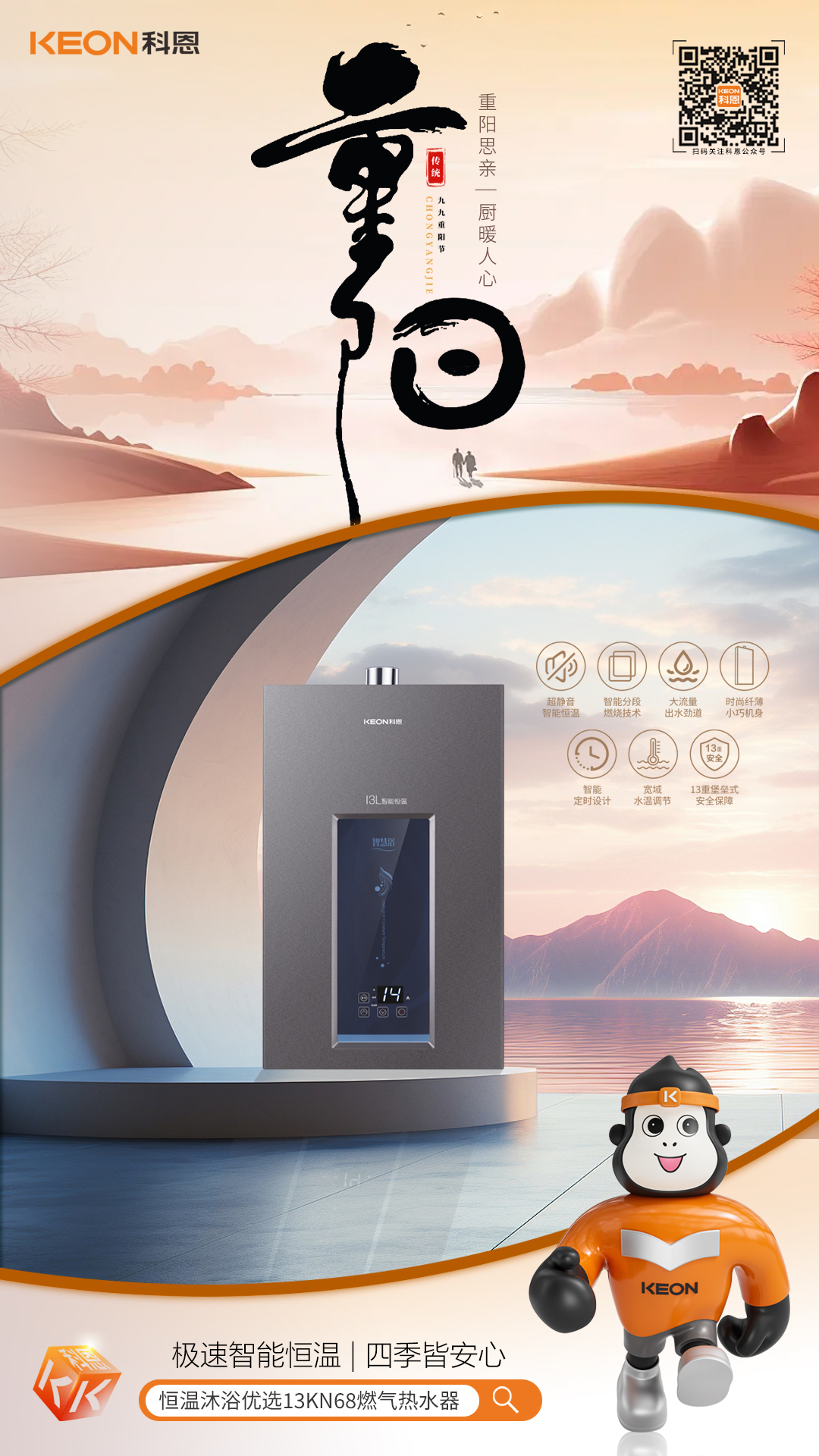 重陽又至,秋意漸濃。登高祈福,賞菊飲酒,孝心綿長,廚房煙火,承載三代溫情。一套省心廚電,讓團圓滋味更圓滿,把對長輩的愛,藏進每一頓餐食里。科恩廚電助你打造,一個舒適、便捷、安全的廚房環境,讓孝心在廚房中綻放。
