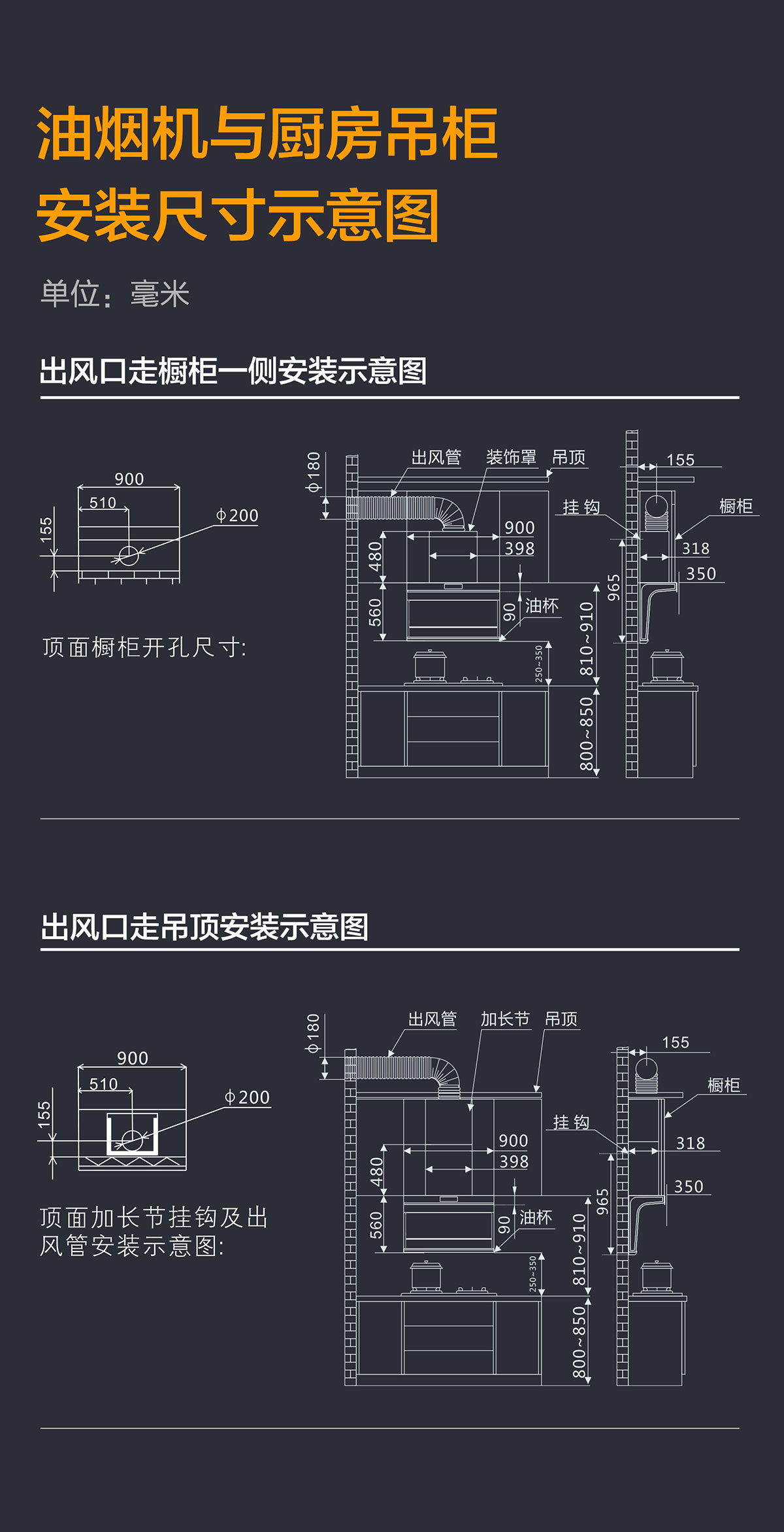 - 頂側(cè)兩吸,多方位爆吸油煙,四面八方不跑煙。
