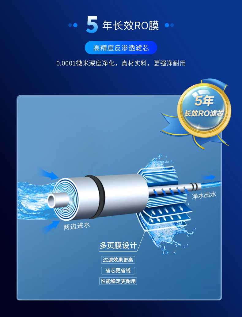 - 5年長效RO膜,真材實料更強凈耐用