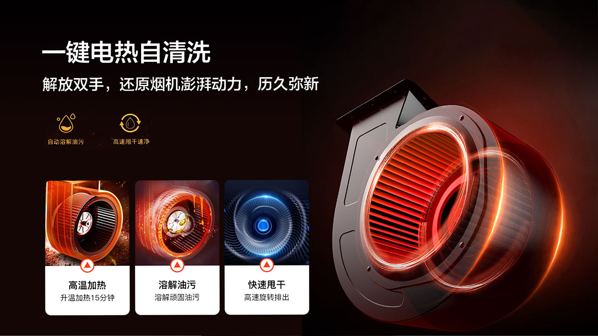 - 一鍵電熱自清洗,解放雙手,還原煙機(jī)澎湃動(dòng)力,歷久彌新