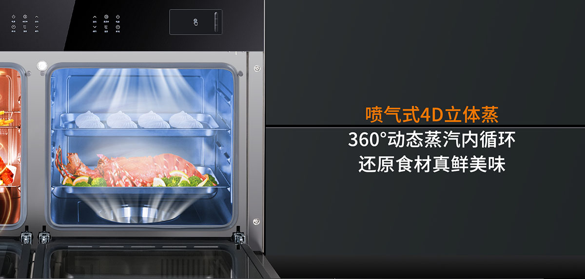 - 噴氣式4D立體蒸,360°動(dòng)態(tài)蒸汽內(nèi)循環(huán),還原食材真鮮美味