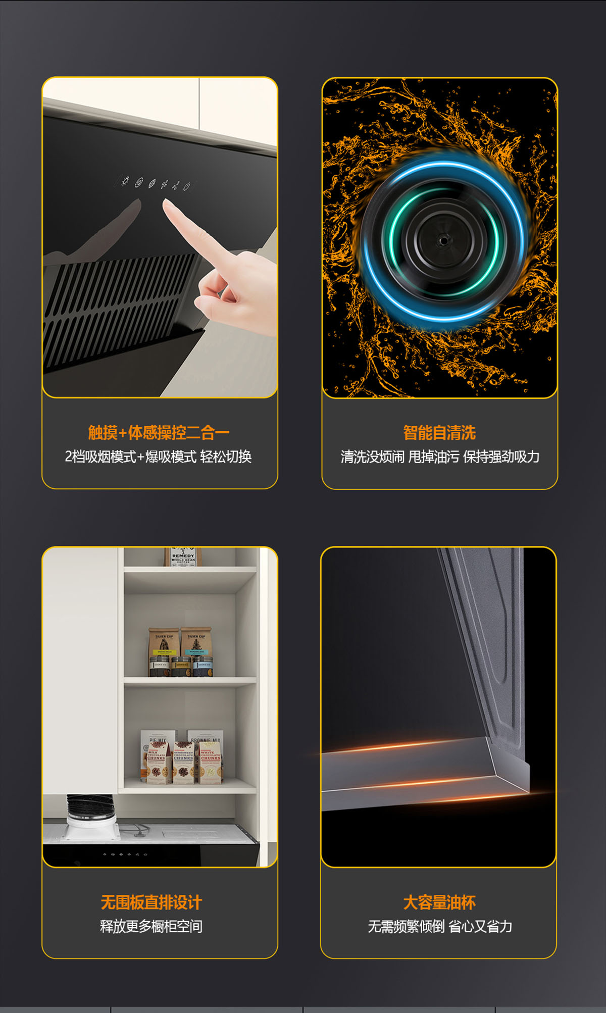 - 無圍板直排設計,釋放更多櫥柜空間