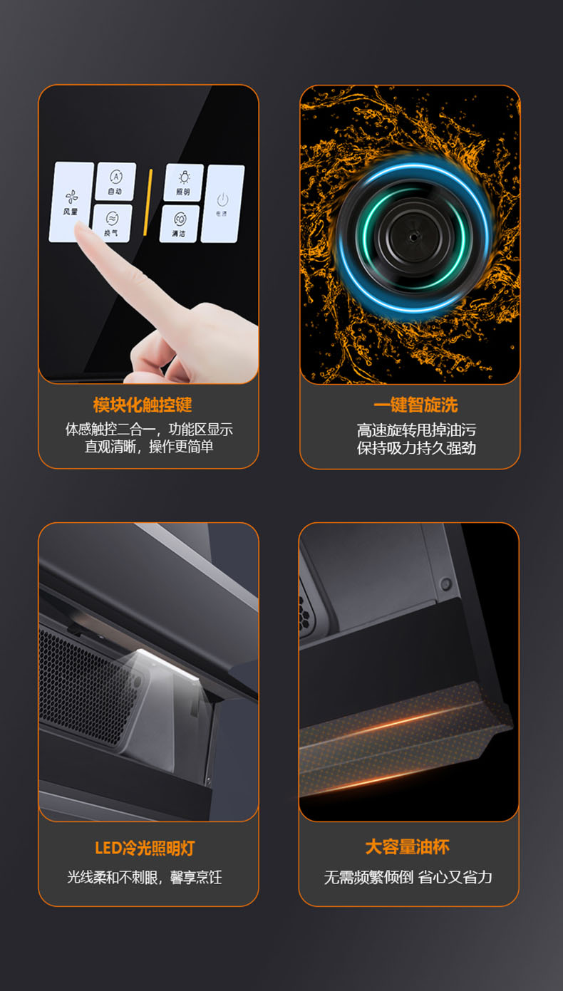 - 揮手智控,零觸碰調(diào)節(jié)操作面板,讓油污不沾手