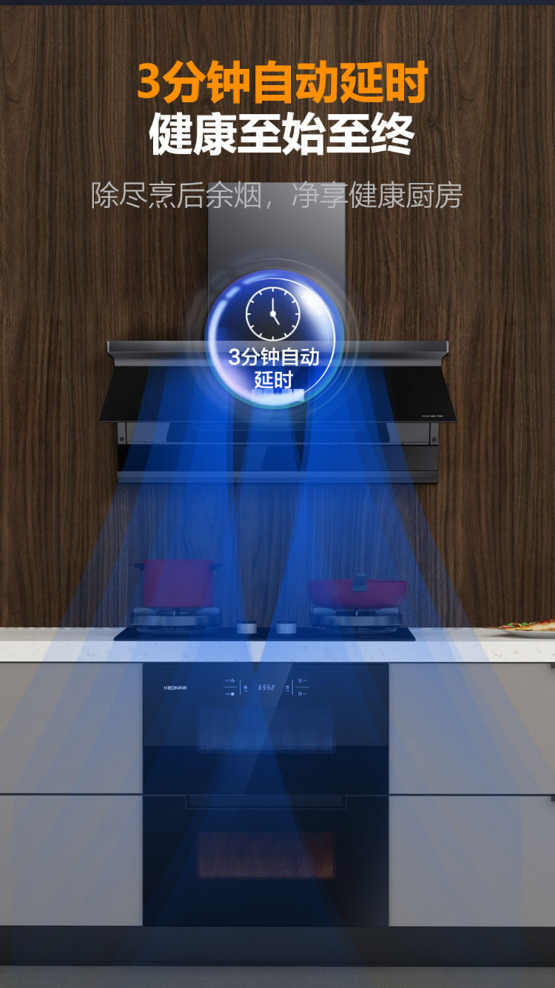 - 健康至始至終,3分鐘自動(dòng)延時(shí),除盡烹后余煙