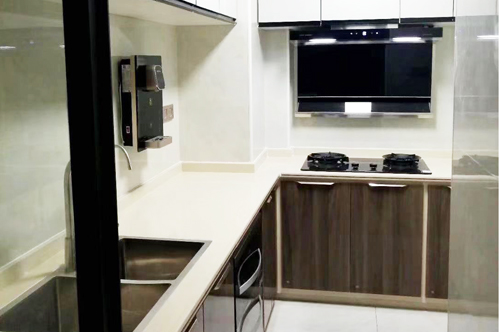 科恩廣東經銷商提供的煙機、燃氣灶和不銹鋼水槽廚房實景